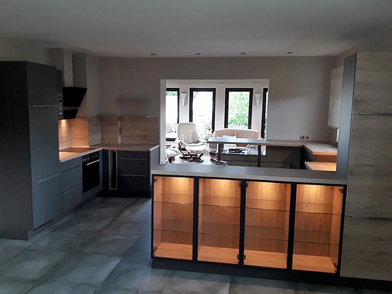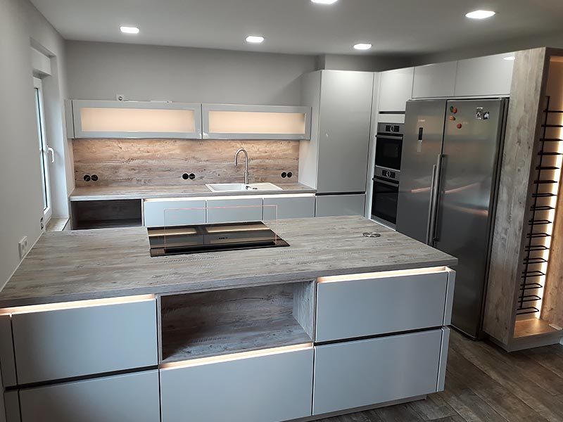 Durch mögliche Umbauten z.B. neue Arbeitsplatten, Schrankänderungen oder neue Sockelprofile, lässt sich oftmals die bisher genutzte Küche in den neuen Räumen weiterverwenden und meistens sogar noch optisch aufwerten.